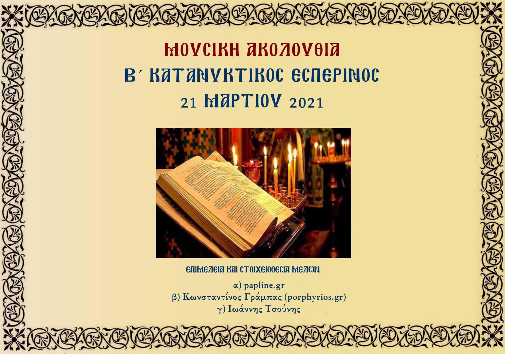 (Μουσική Ακολουθία) Ακολουθία B΄ Κατανυκτικού Εσπερινού! 21.03.2021